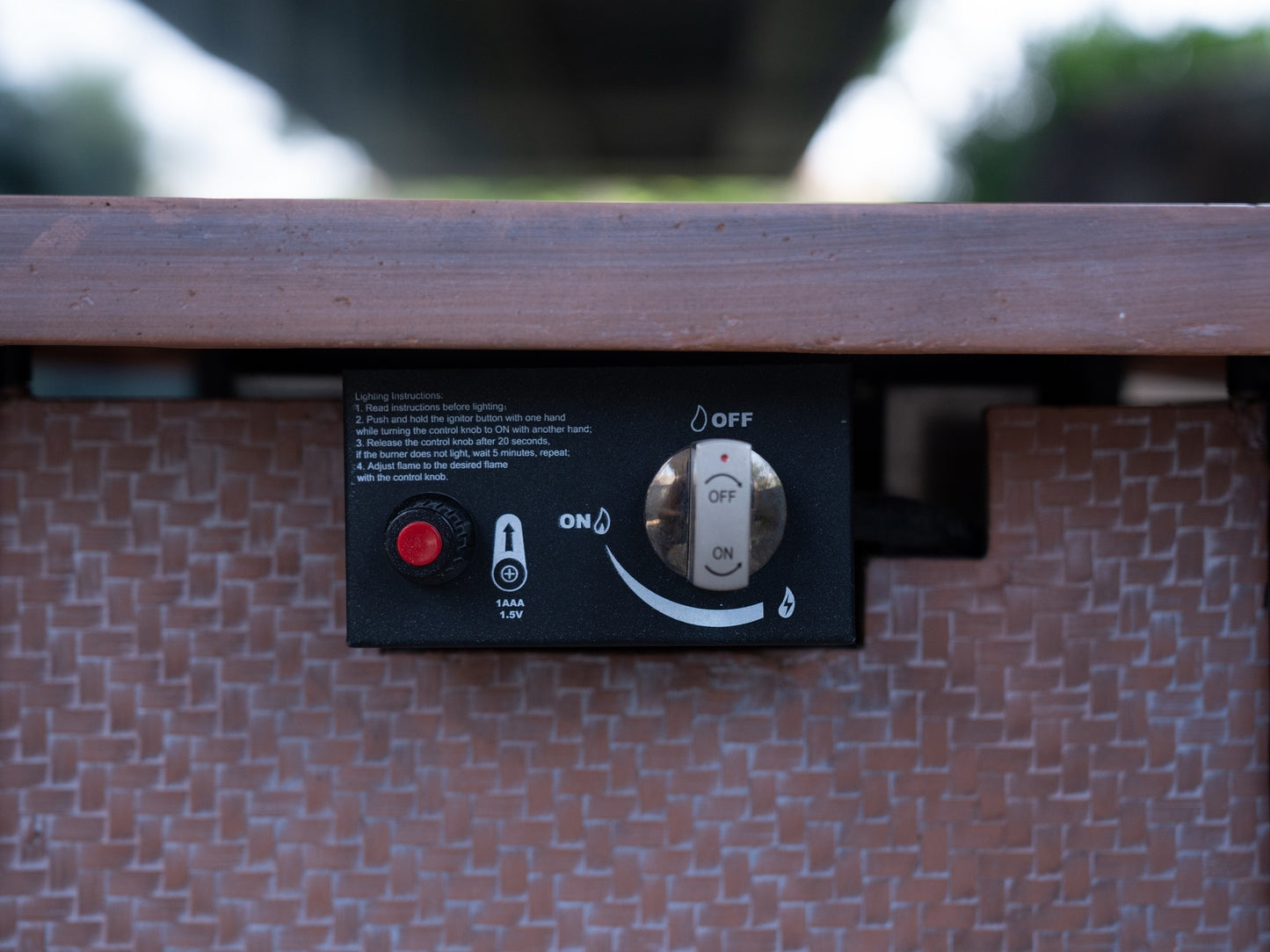 25' H Outdoor Patio Propane Gas Fire Pit Table - 50,000 BTU High-temperature-resistant carving process for environmentally friendly materials with the effect of rattan weaving grain