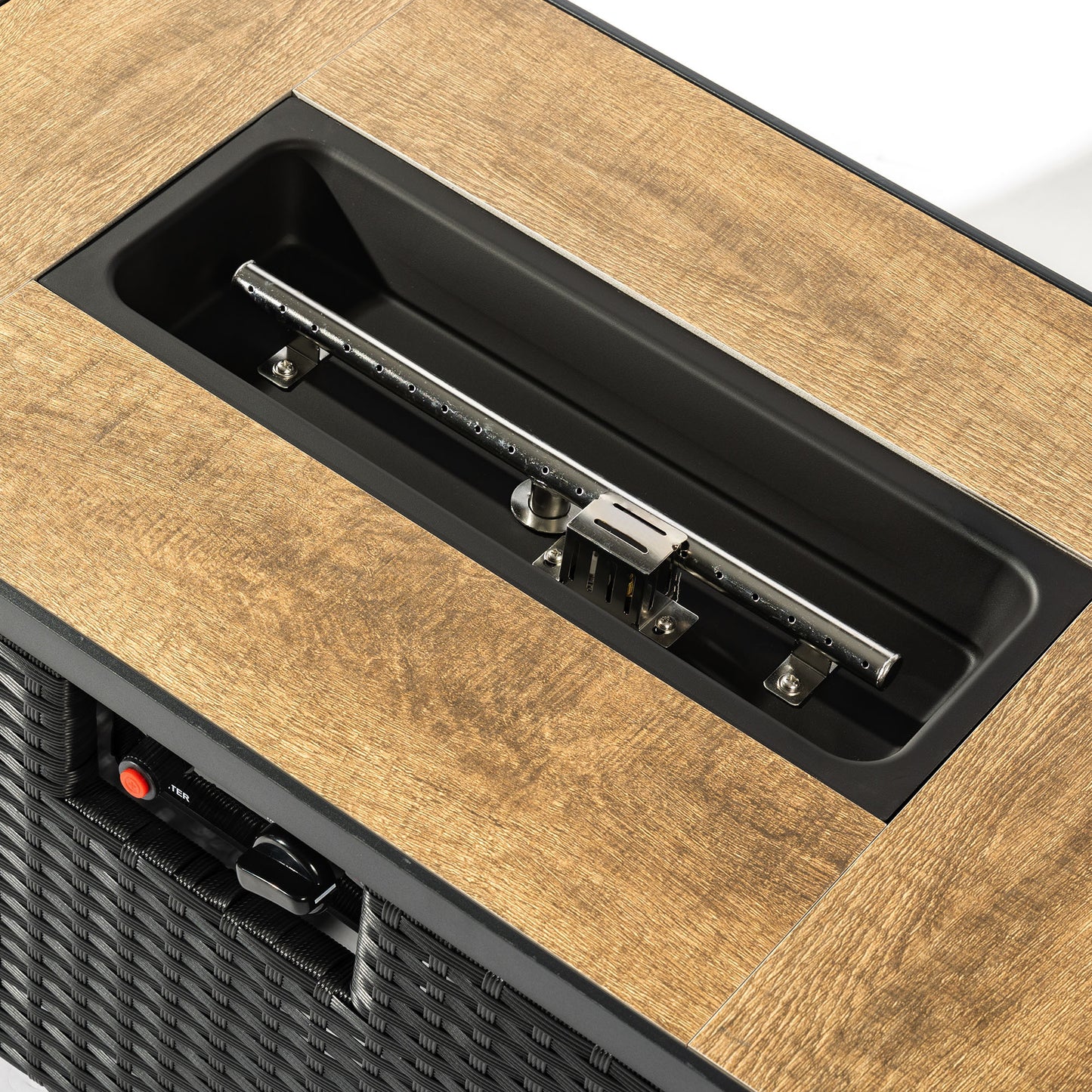 32' Propane Gas Fire Pit Table with Propane Tank Cover, 50000 BTU Rectangular Steel Fire Pit with Beautiful Wicker Base for Outside Garden-Dark Gray