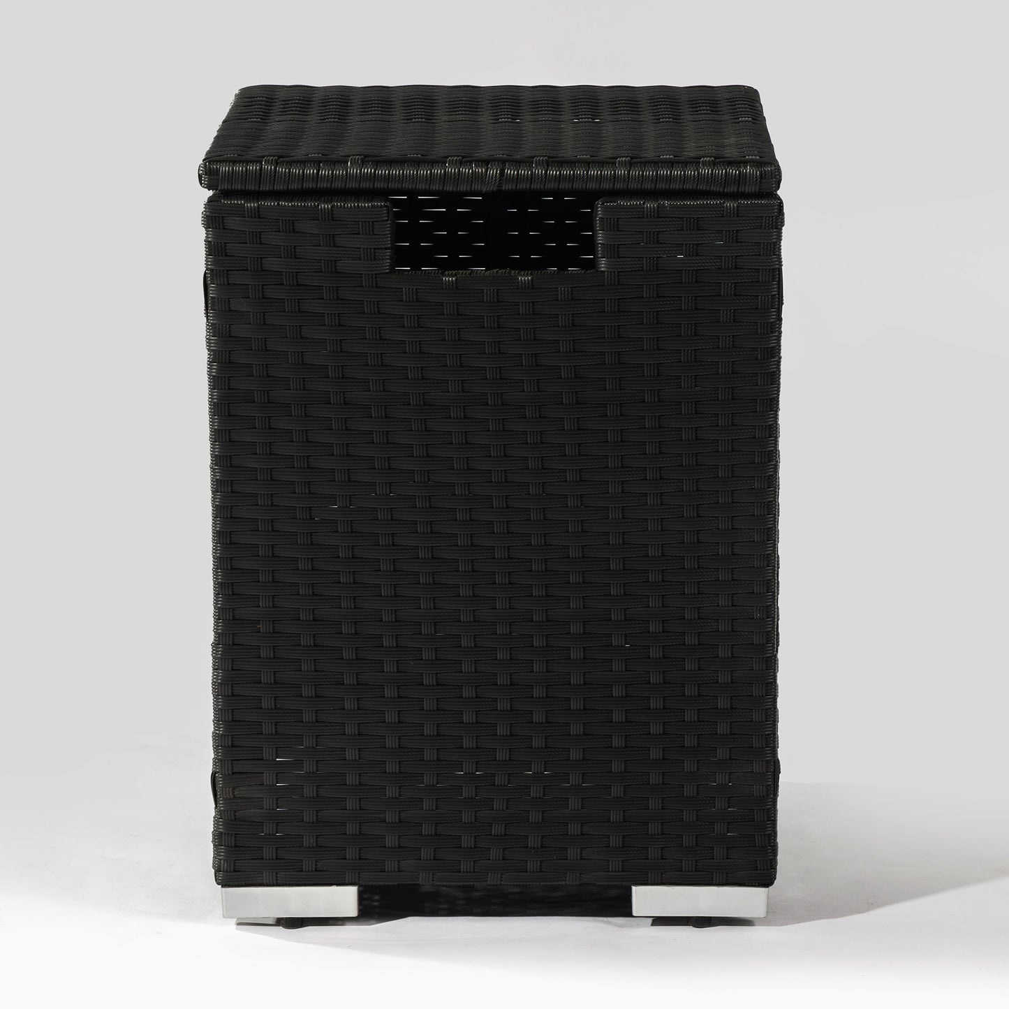 These fire pits are a perfect blend of style and functionality. The fire pits feature a sleek black woven design, exuding a modern and sophisticated look. The dancing flames inside create a warm and inviting atmosphere, ideal for outdoor get - togethers. Paired with them is the propane tank cover, which not only matches the aesthetic of the fire pits but also serves to protect the propane tank. It's a great addition for those seeking both practicality and a touch of elegance in their outdoor spaces.