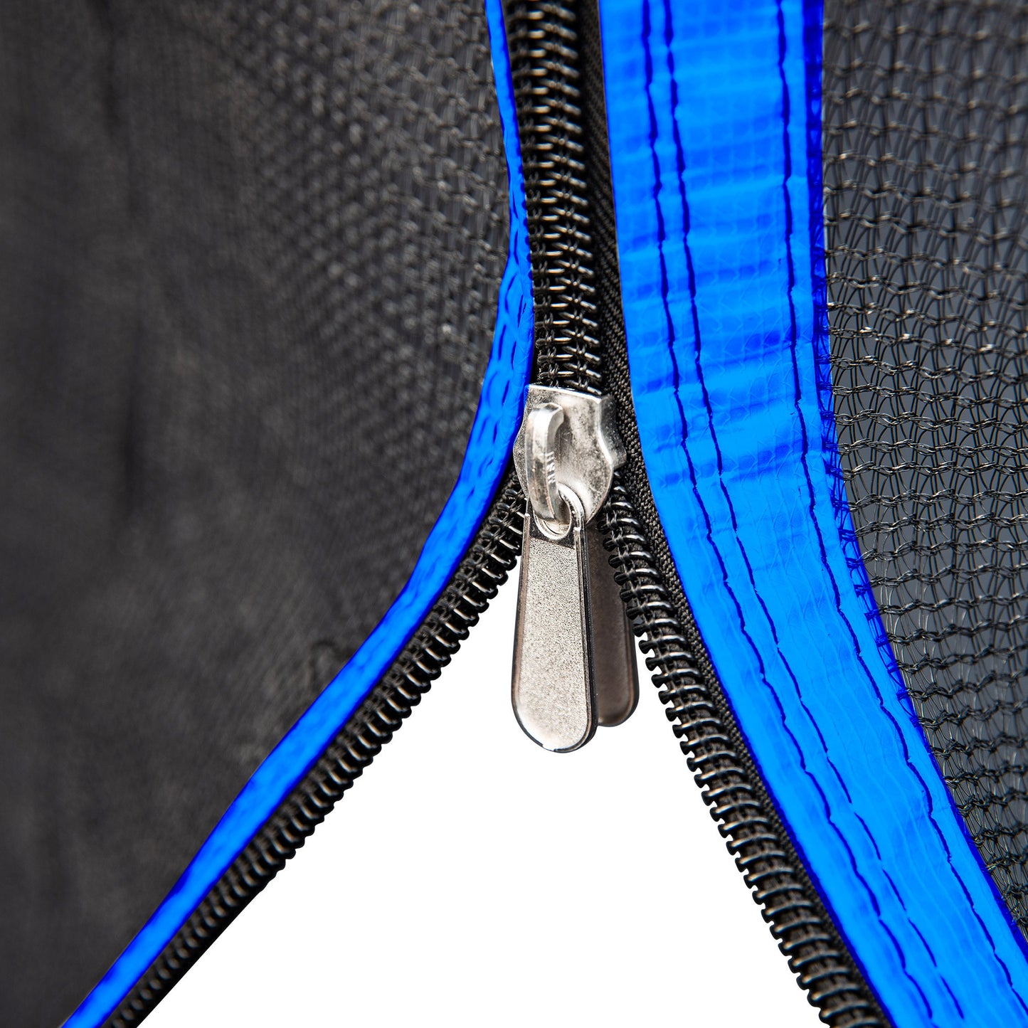 Safeseal System - This 16FT trampoline with enclosures feature a 360-degree safety net that is securely attached to the jumping mat all the way around, reducing the risk of an arm or leg falling through. A full enclosure with a zipper door surely lends you peace in mind. The rust-resistant steel 4-step ladder helps you get onto your trampoline quickly and safely. There's a backboard, You can play basketball in it. Premium Bouncing Experience - High-strength trampoline mat woven together that able to handle constant flexing, making it durable and soft on your feet. 108 galvanized springs evenly stretched around the mat ensure a smooth and responsive bounce. Built with Durability - Heavy gauge galvanized steel frame forms 6 W-shaped legs provide stable base for the jumping zone. The joins are press-fitted onto each frame piece to reduce frame noise and movement between sections and ultimately, reduces overall wear and tear. Fun Features - Jumping is more fun by adding a basketball goal, which will keep your kids busy all day. Assembly Details - We have designed this trampoline to be as easy as possible to assemble, we recommend two or more people for assembly. Quick tip: view the assembly sequence to reduce the construction time. Weight Capacity: 330 lbs. ***Trampoline jumping pad (pp material) that is wear-resistant. The trampoline will not fade when it is used outdoors (in order to keep the trampoline's new appearance when it is not in use, it is best to put on a protective cover) Add a triangle net around the backboard to keep the ball from flying off the trampoline Double color cover,the front blue and the back is green.you can interchanged at will
