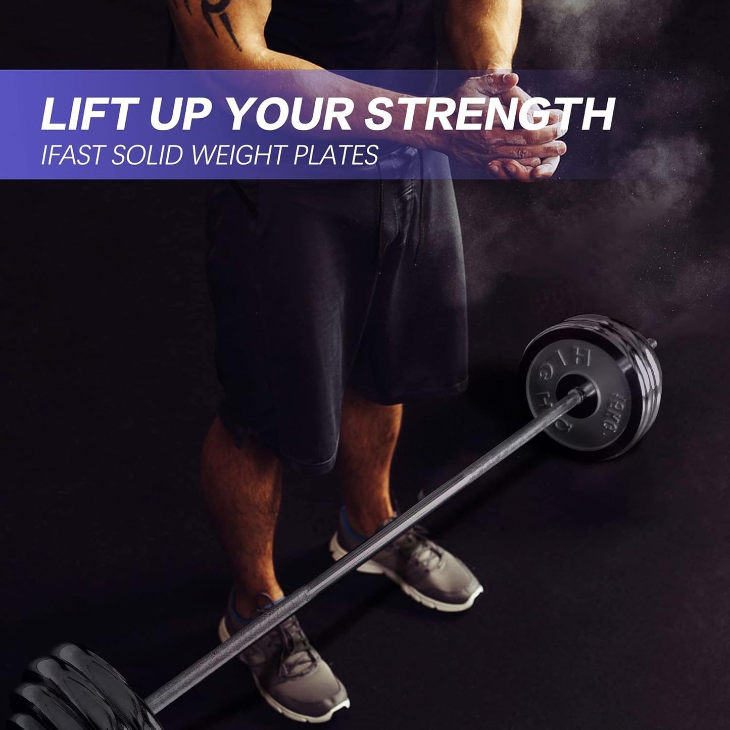 - These weight plates are secured with a star-locked collars to prevent them from sliding off during the exercise