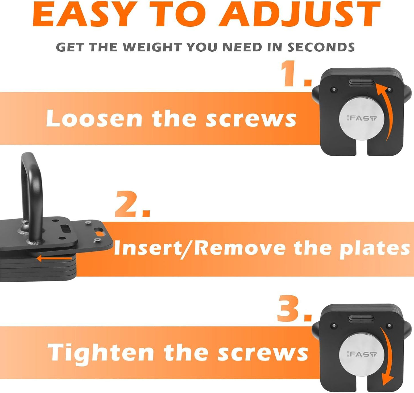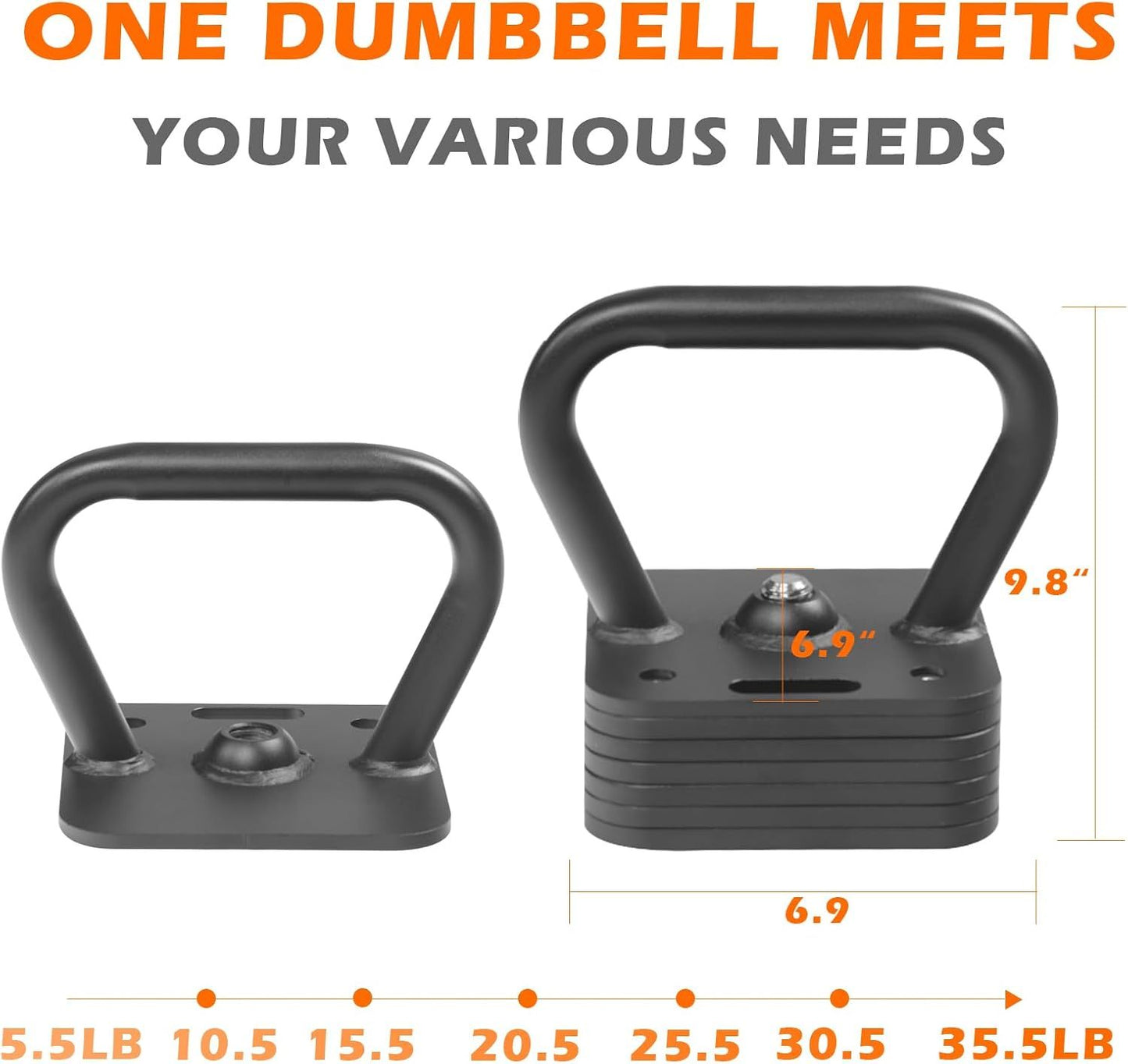 - Share a set of plates with our adjustable dumbbells, or purchase our 6x5lb plates separately to form your own adjustable kettlebell, easily adjust to different weights in seconds - 5.5/10.5 /15.5/20.5/25.5/30.5/35.5 LB, start with light weight and gradually increase the weight, suitable for novice or experienced trainers
