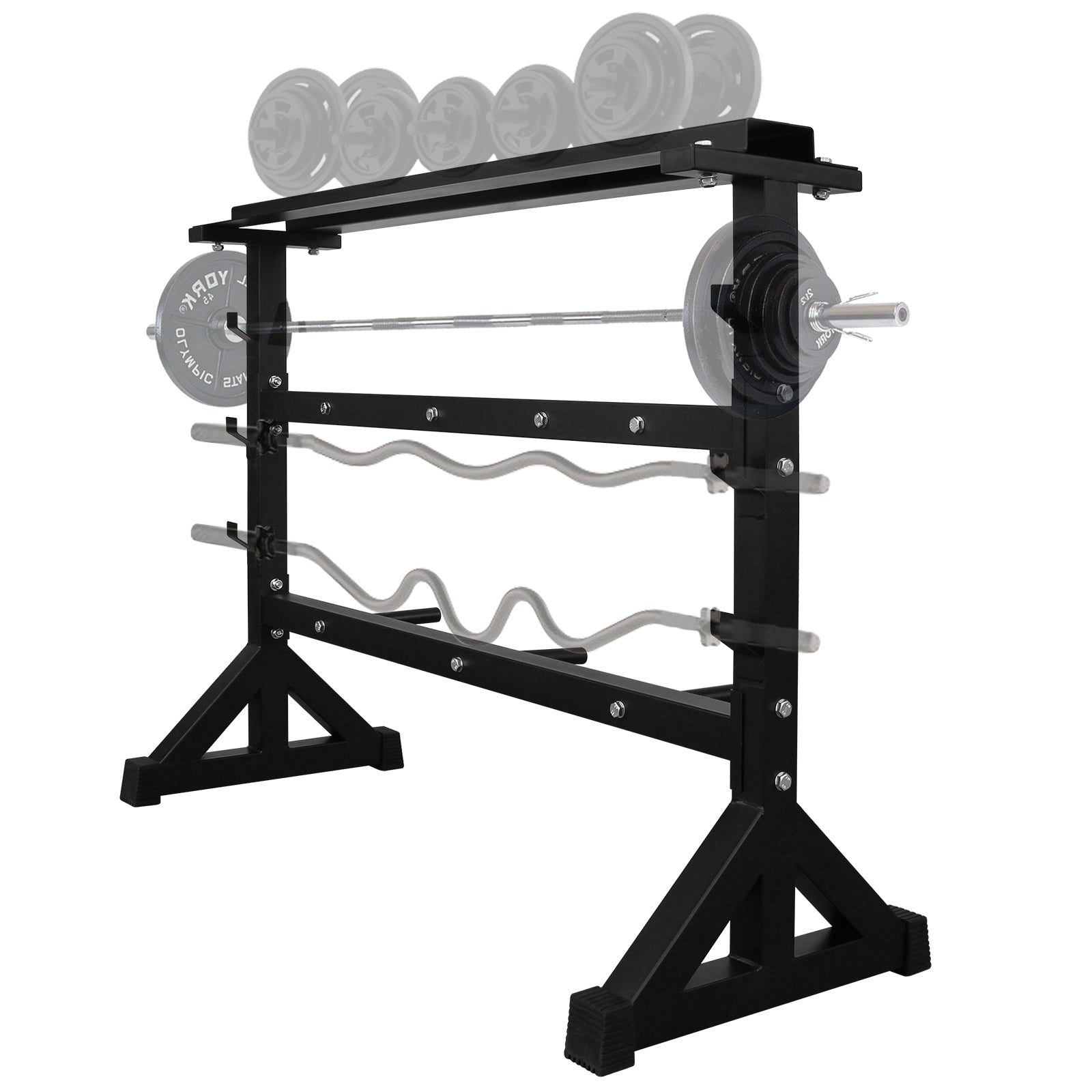 - 【UNIQUE DESIGN】 Store your fitness accessories on this versatile rack with its unique three-tier shelves and multiple storage pillars to keep dumbbell sets, deadlift sets and other weightlifting tools in one place