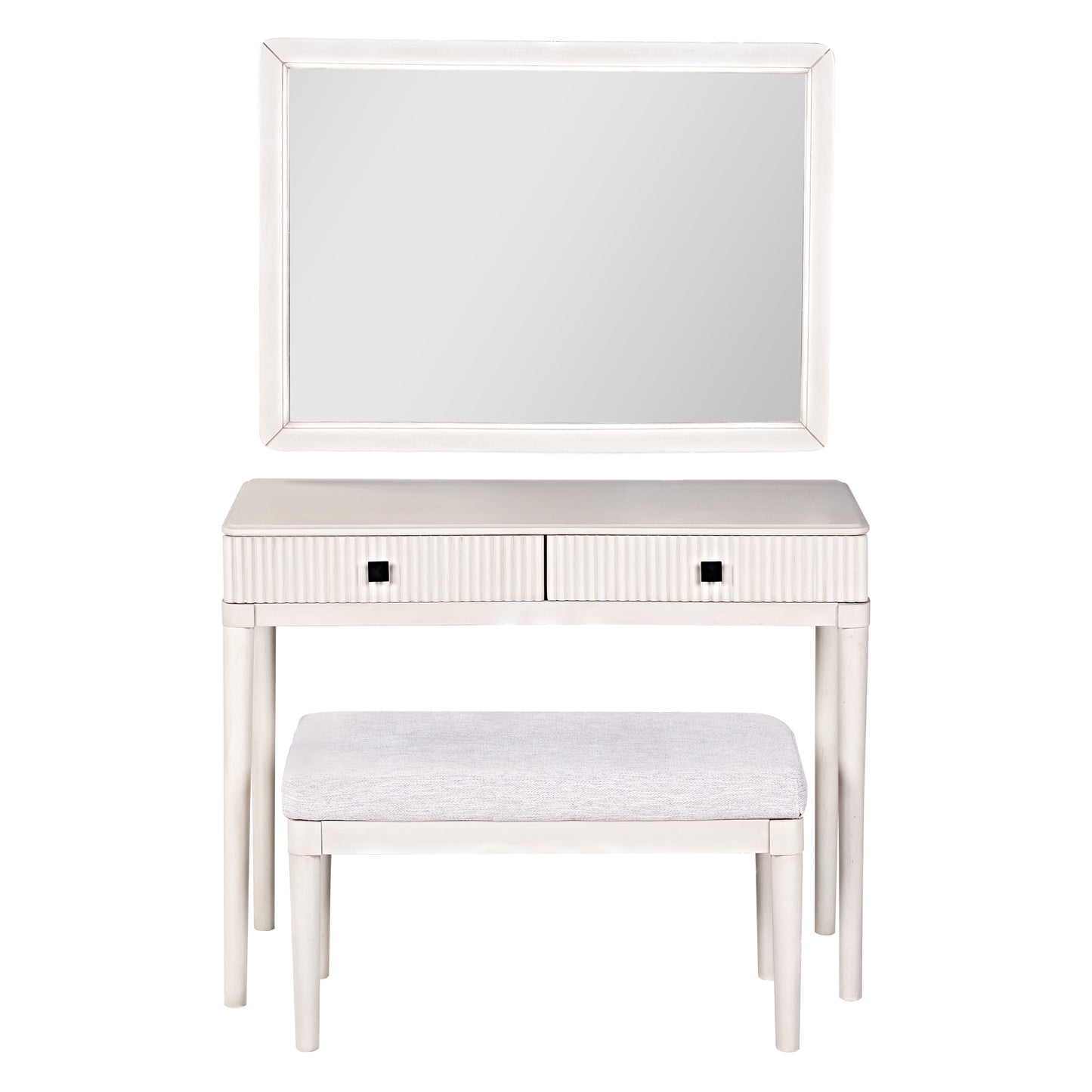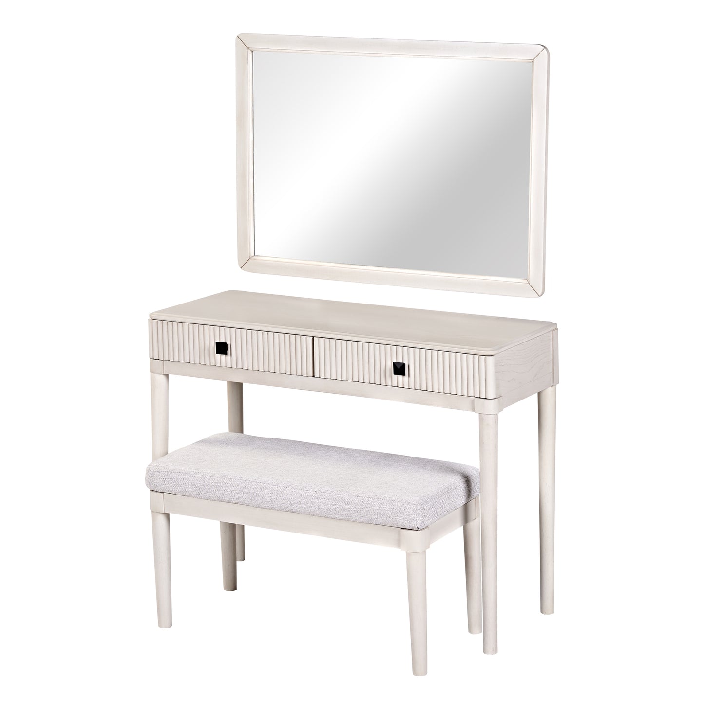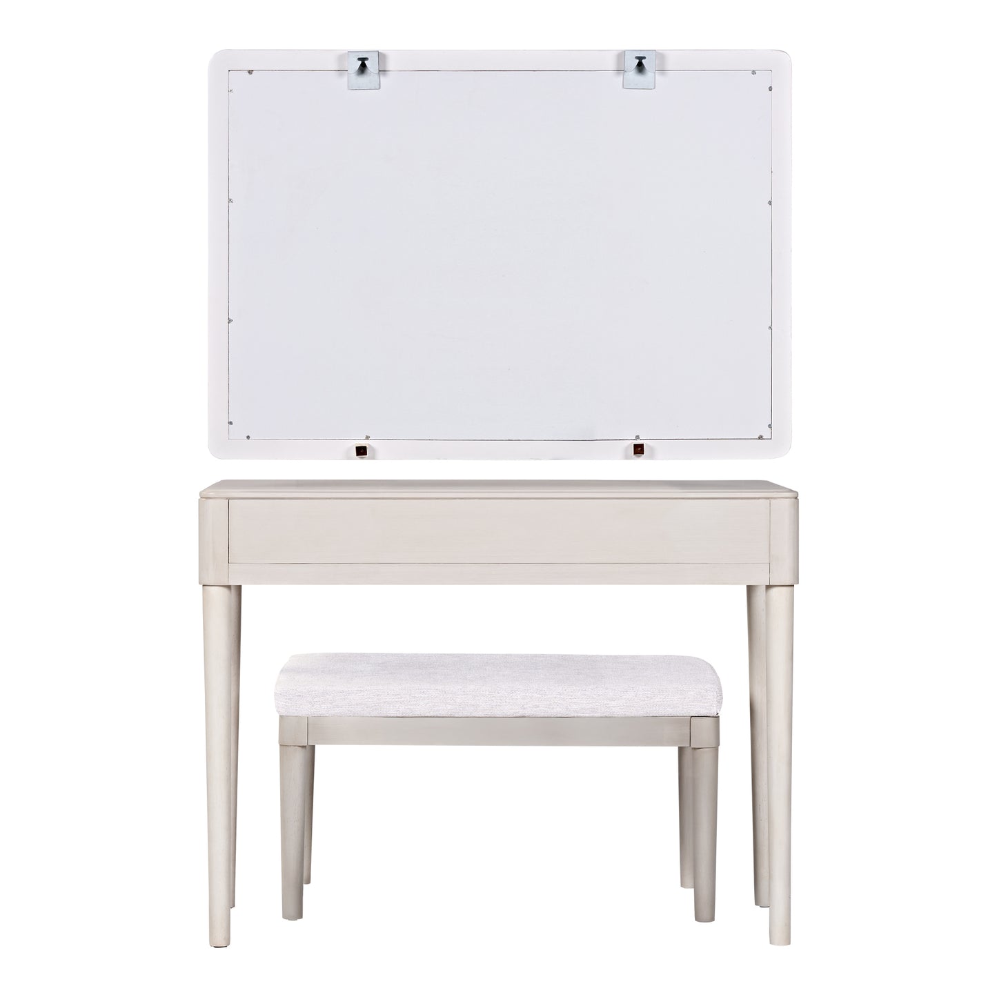 - Comfortable & Stylish Set with Mirror and Stool: The makeup vanity comes with a large square mirror (37.4' x 26.2') and a long bench (30.1' x 15.1' x 16.9') with a soft fabric cushion. The mirror offers a generous viewing area to enhance your grooming experience, while the bench provides comfortable seating. Both components can also be used separately, adding versatility and high-end comfort to your space.