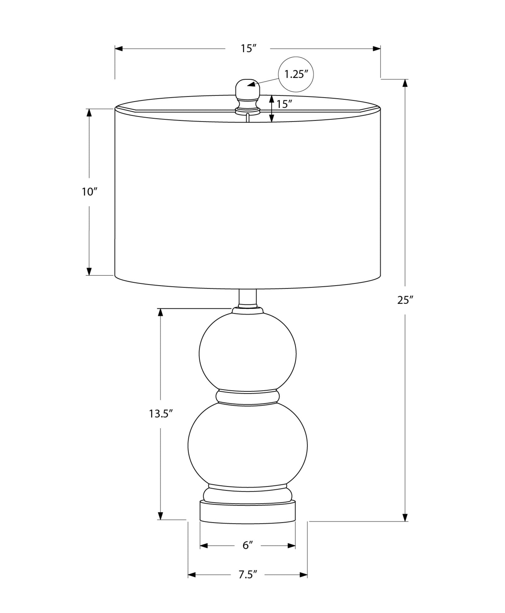 - Stylish Design: Contemporary 25"H cream ceramic table lamp with a double gourd shape on an acrylic crystal-like base, topped with a chic drum ivory shade.