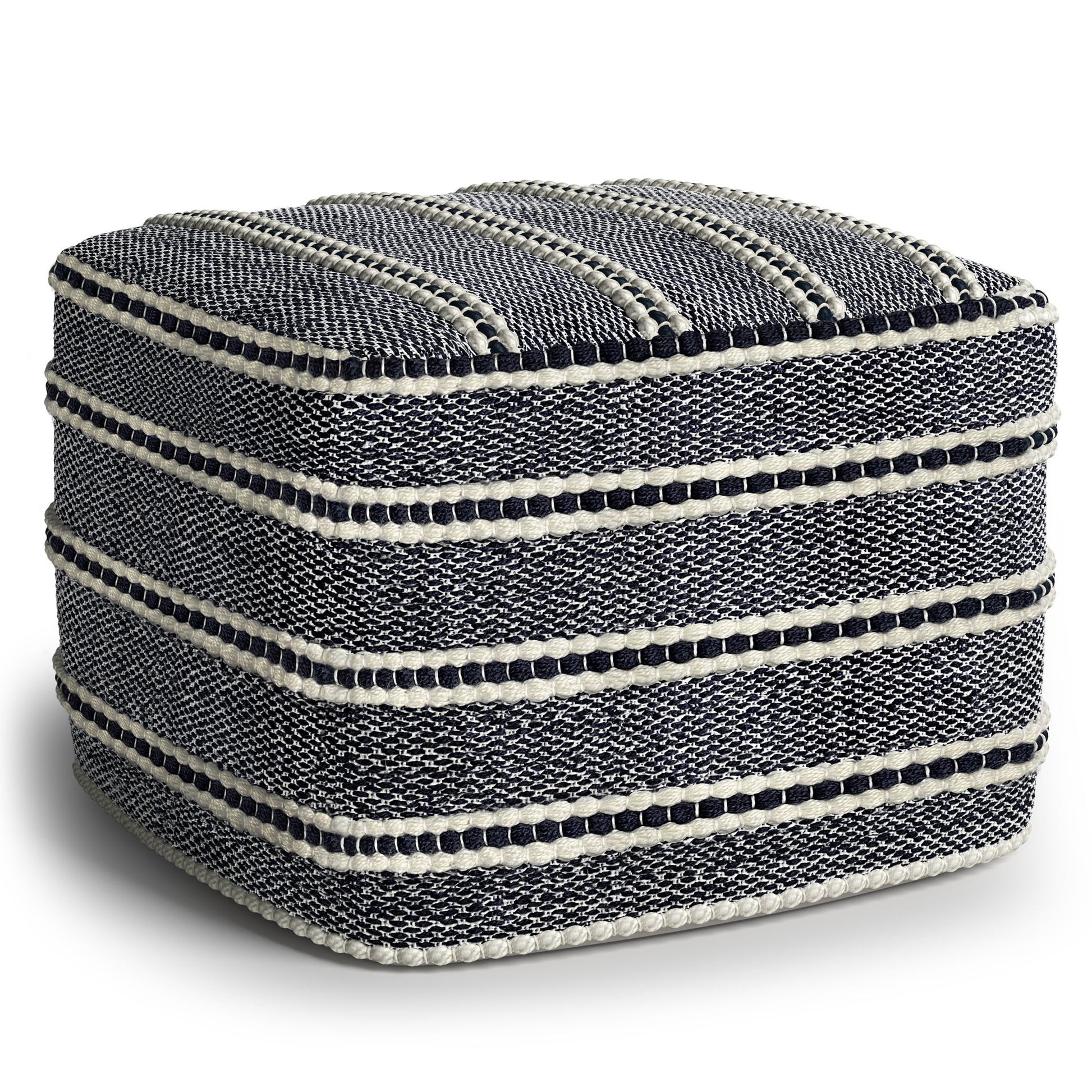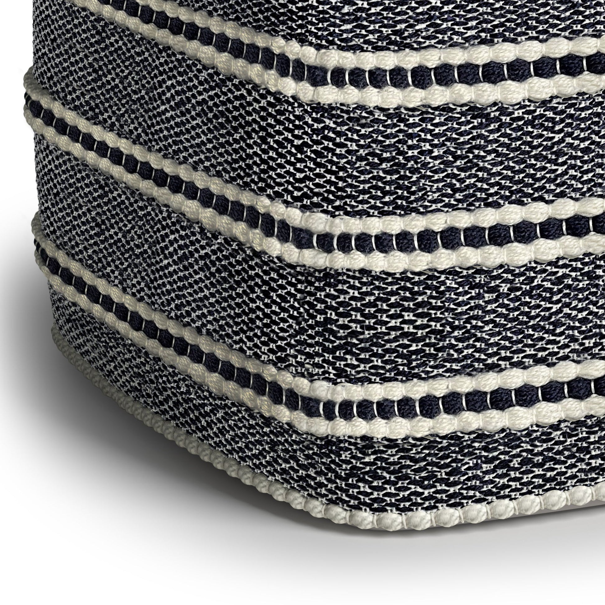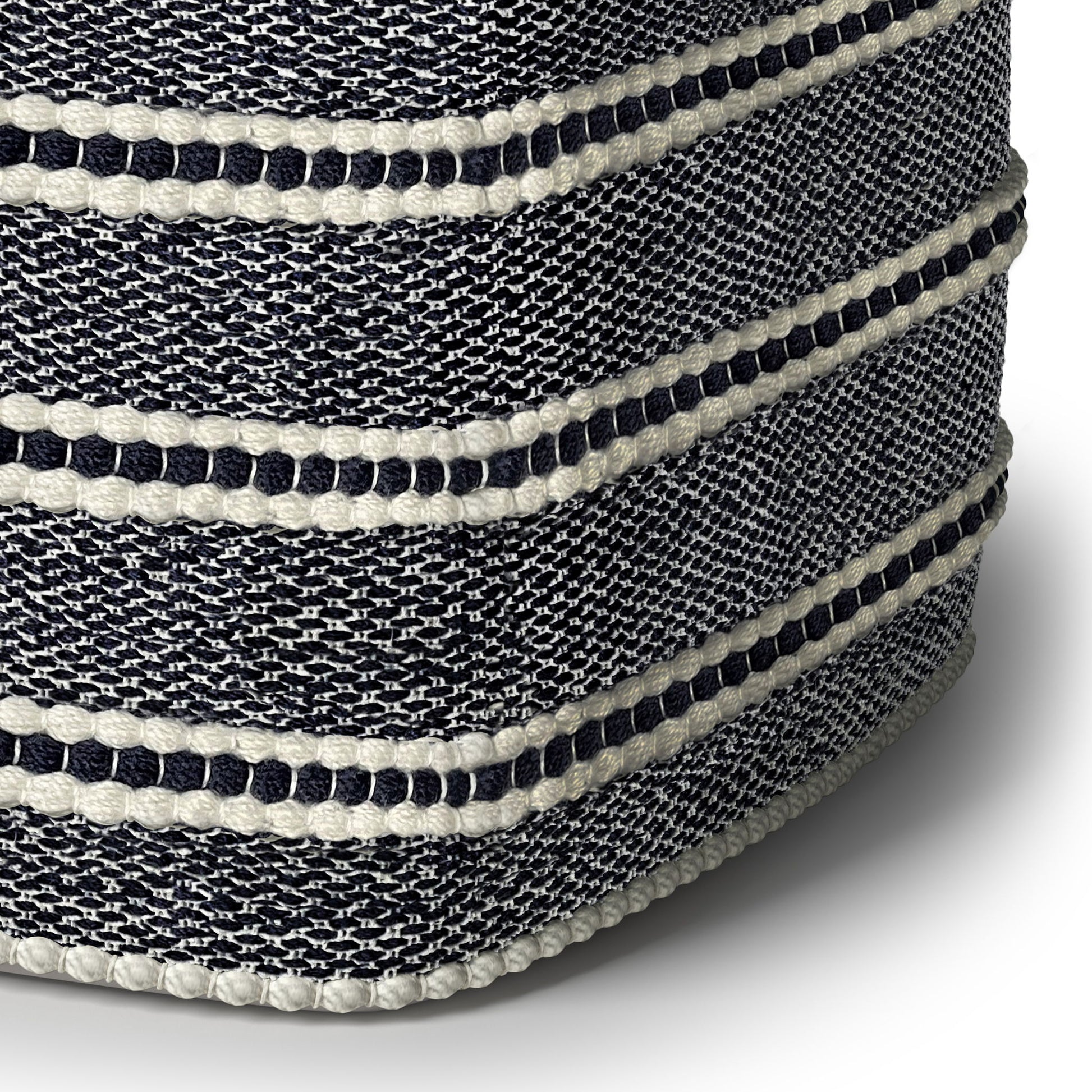 Corrie - Square Woven Outdoor / Indoor Pouf - Navy / White