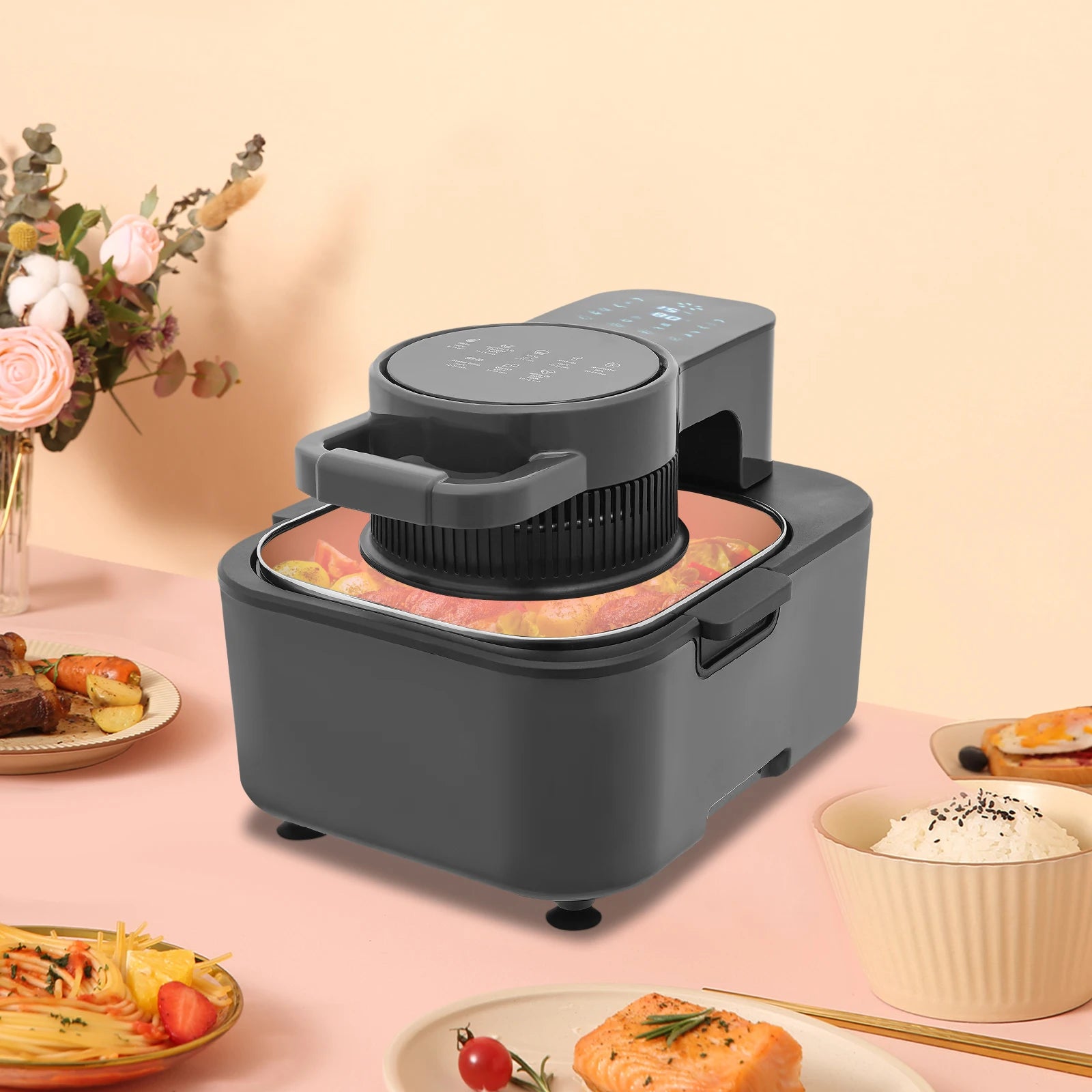 Cook crispy fries, wings, and veggies faster with 80% less oil! This digital air fryer combines 1350W power and smart presets for guilt-free family meals. This product is suitable for making French fries, barbecue, shrimp, pork ribs, desserts, chicken legs, bread, fish, and more.