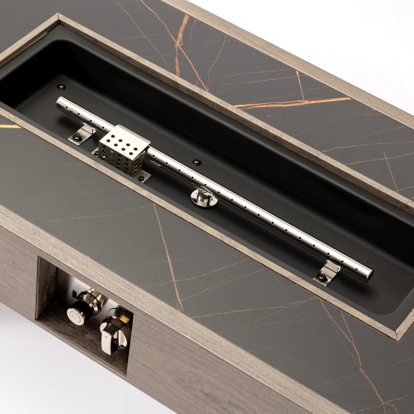 - Modern Design & Durable Construction: Featuring a sleek, contemporary design with stone or walnut wood finish options, this outdoor fire table combines elegance and functionality. Built with a robust stainless steel burner bowl for low maintenance and heat resistance.