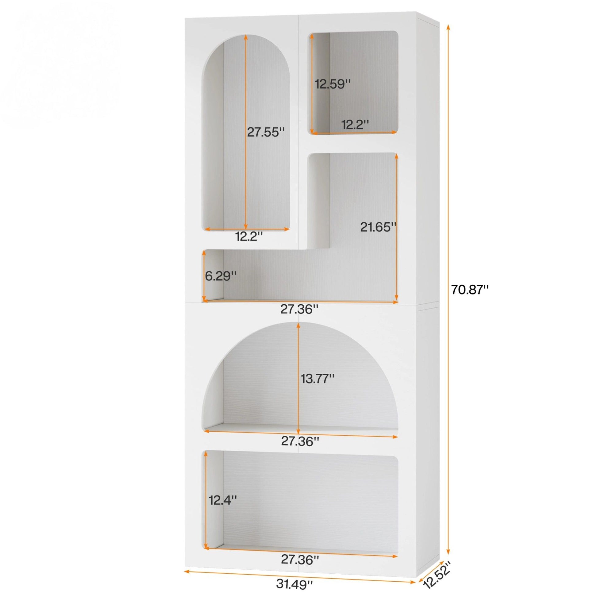 Geometric Arched 5 Shelf Art Display Bookcase For Living Room - White