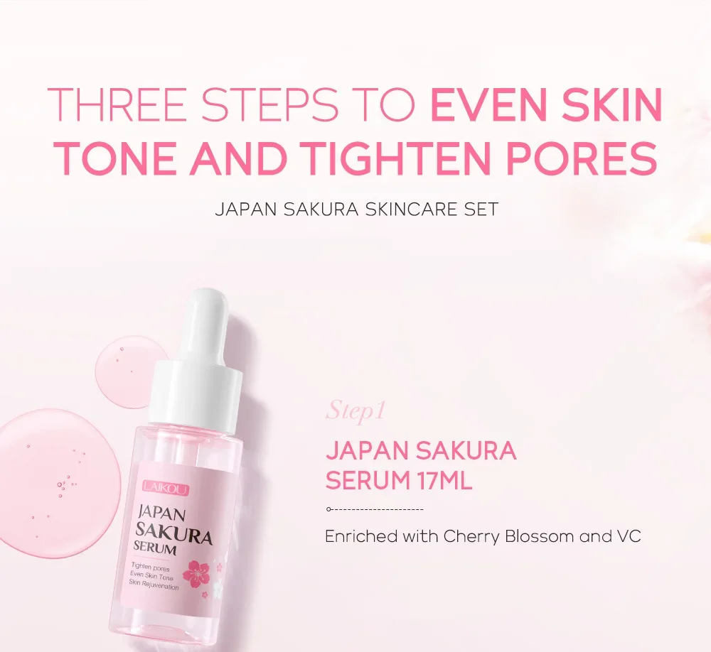 LAIKOU Vitamin C 24K Golden Sakura Skin Care Sets Face Cream Serum Eye Cream Moisturizing Anti Wrinkles Face Care Kit 3pcs/set