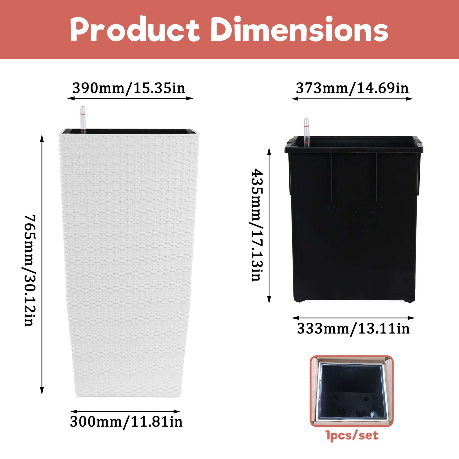 Large Self Watering Flower Pot With Drainage Holes & Inner Tray