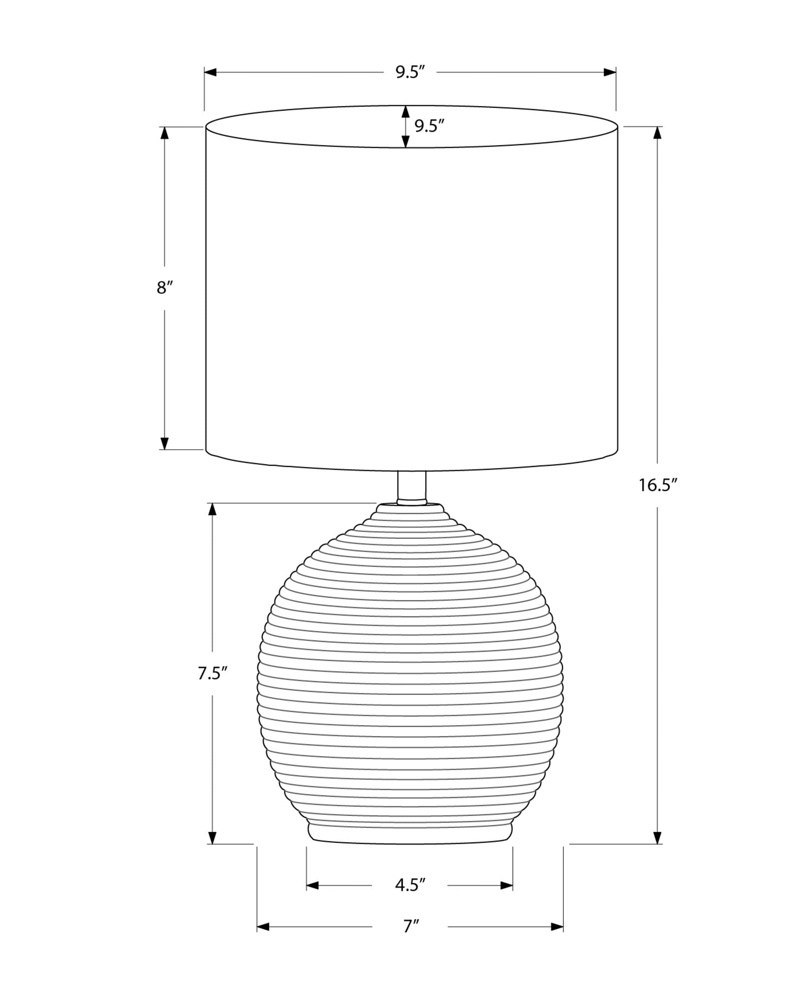 - Stylish Design: Contemporary 16" table lamp with a beehive design textured black resin base and an ivory fabric drum shade.
