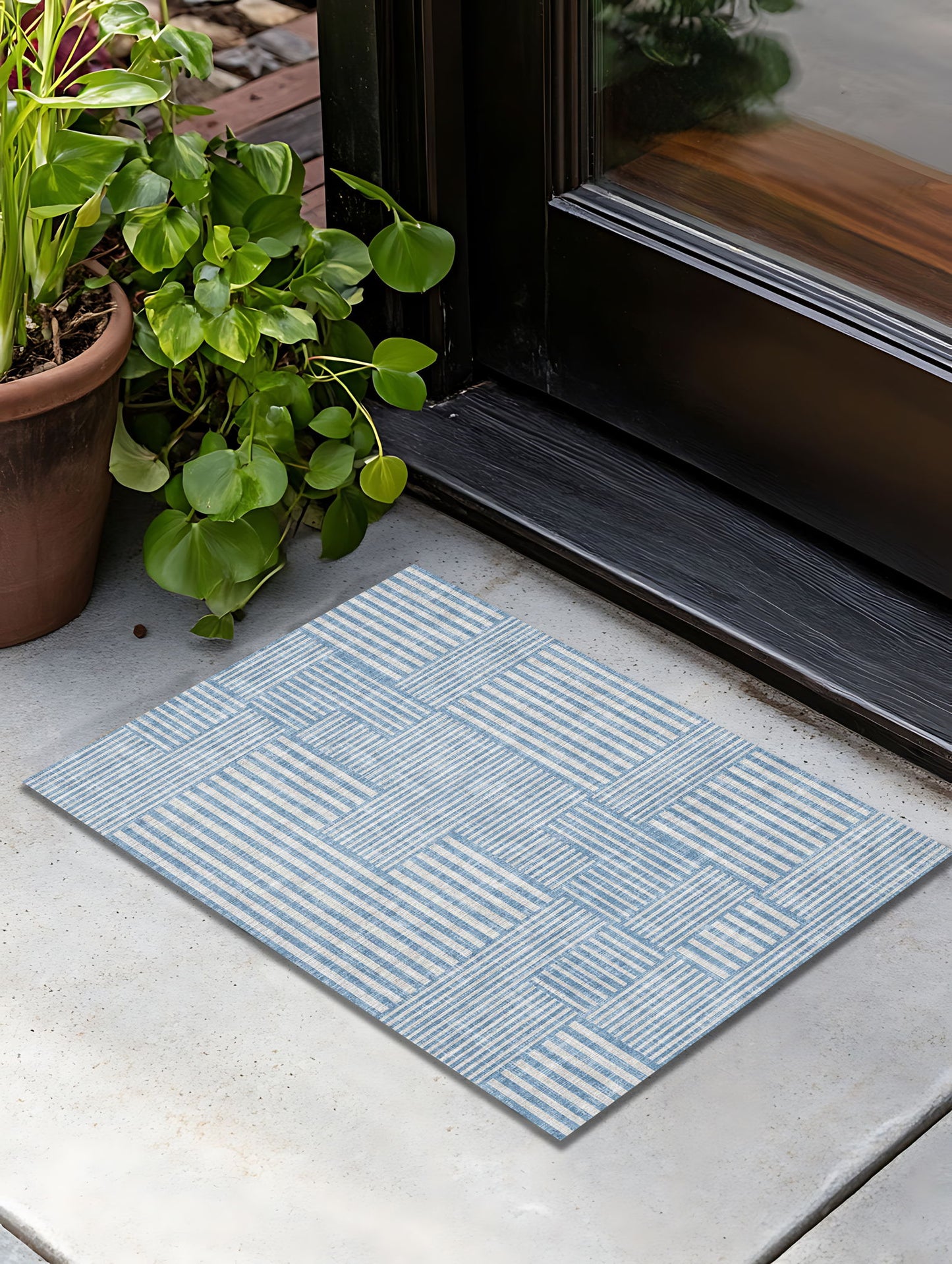 Macau - Non - Slip Accent Rug - Light Blue / Silver