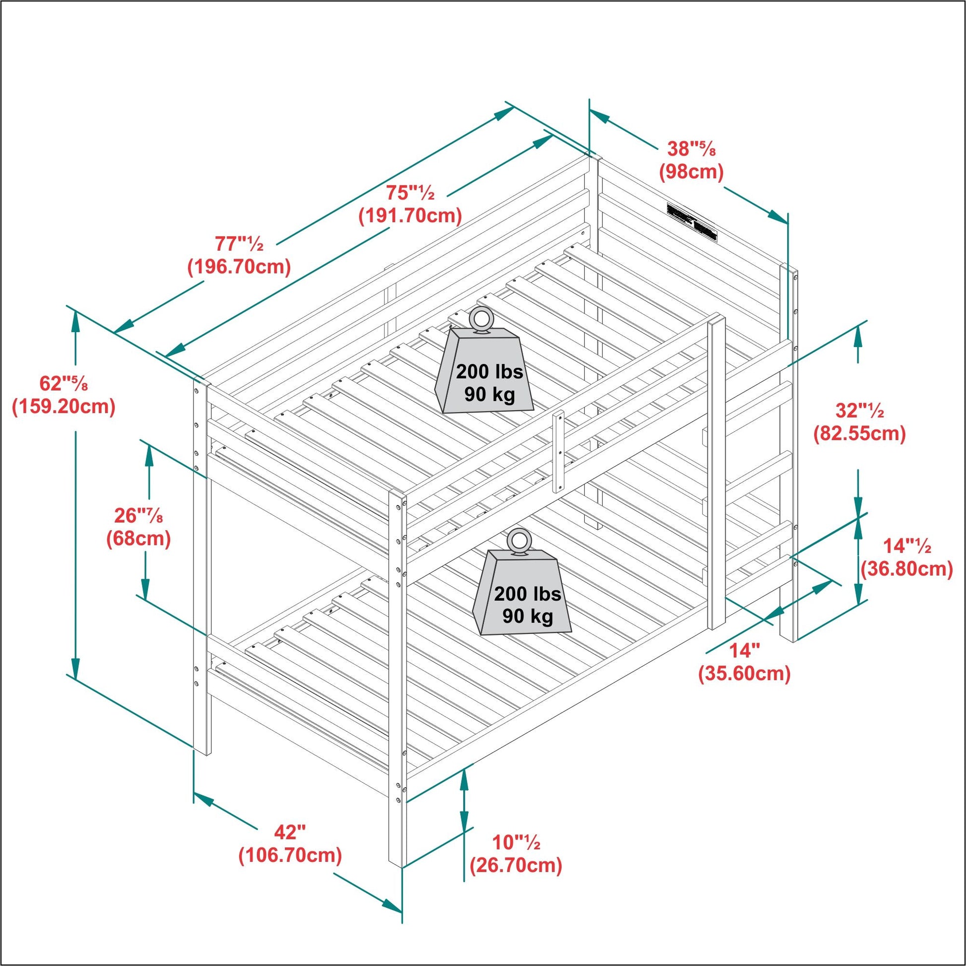 Modern Simple Solid Wood Twin Over Twin Bunk Bed - Black