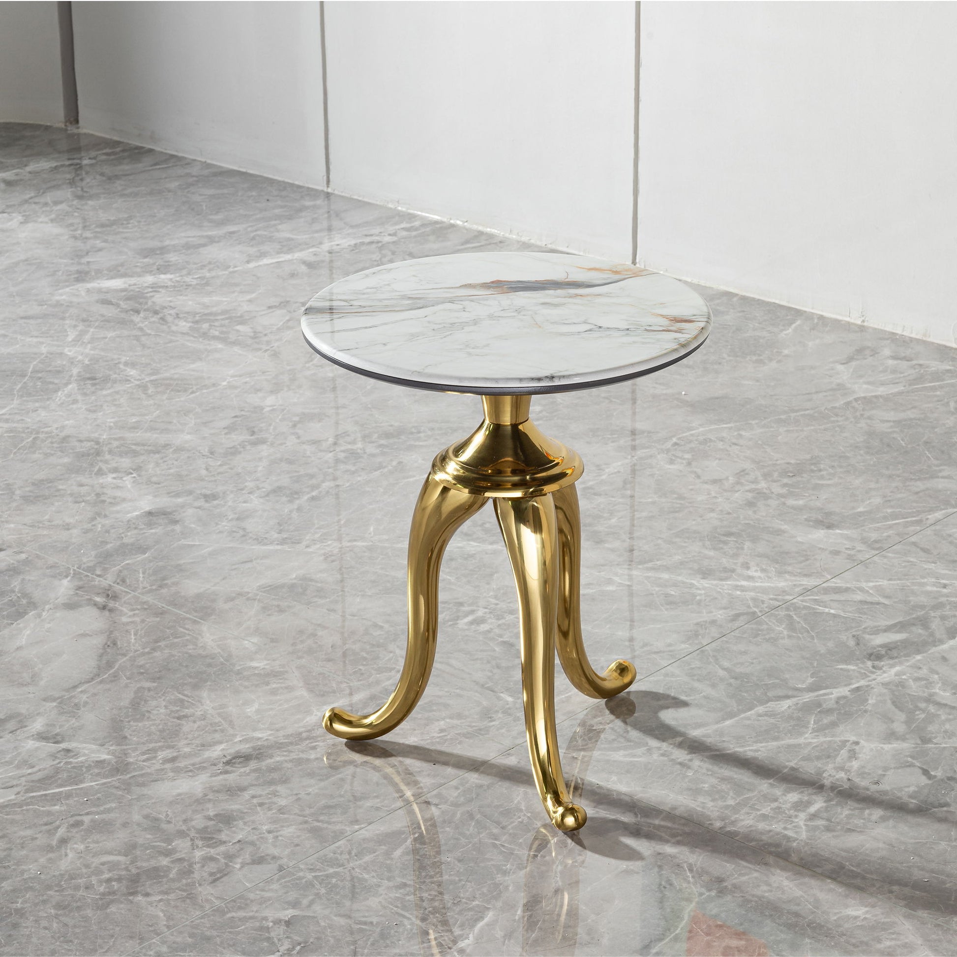 Modern Small Coffee Table With Microcrystalline Stone Top And Carbon Steel Legs - Gold