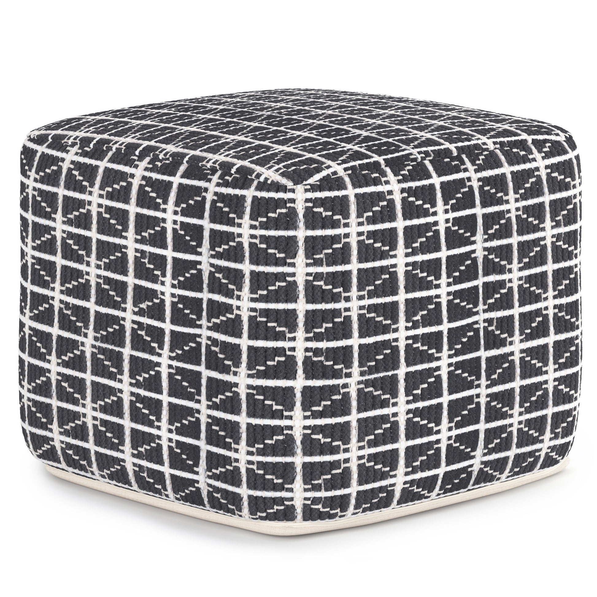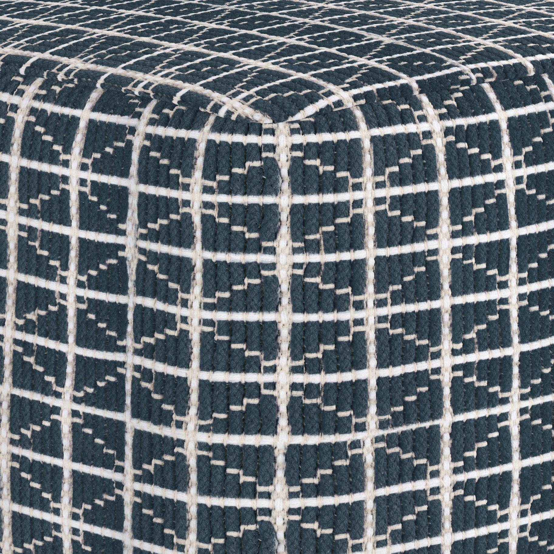 Noreen - Square Pouf - Dark Blue / White