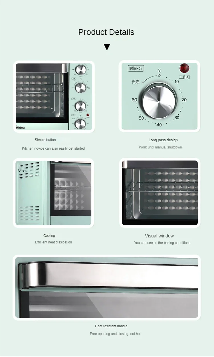 Visualize the wide view, see the growth of food, wide view big window, baking conditions can be panoramic view, to meet all the curiosity of cooking.